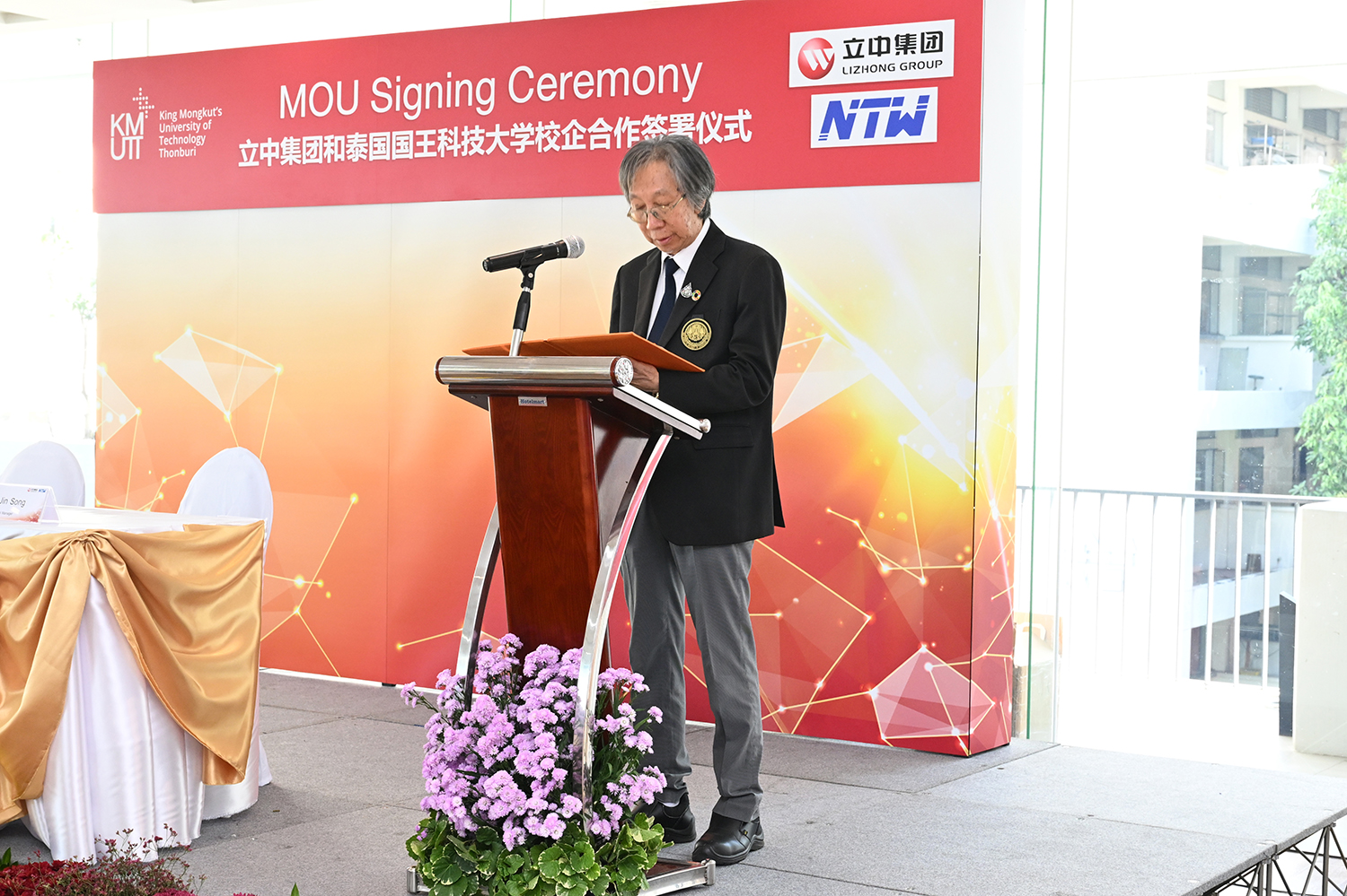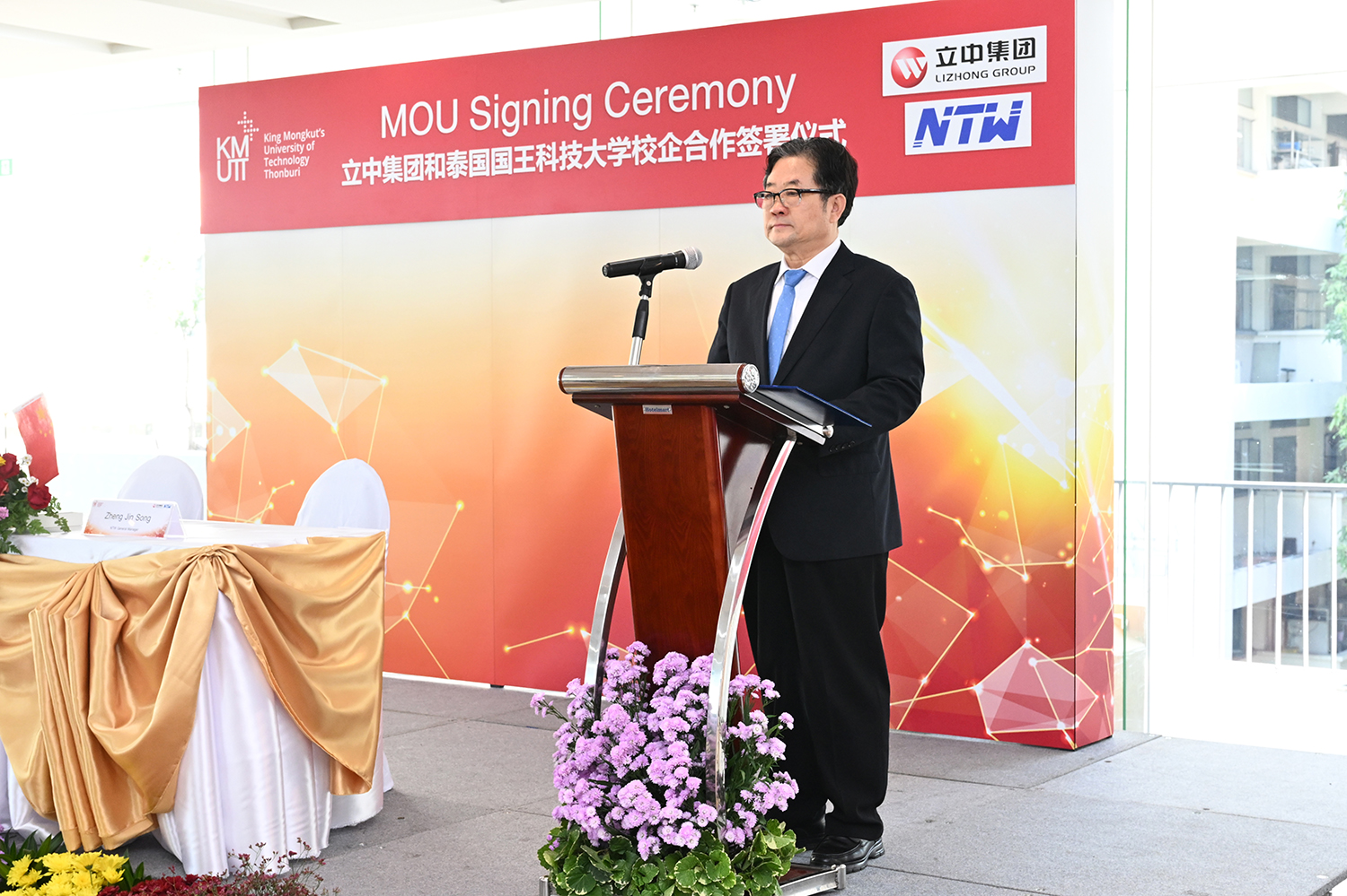 2023年12月14日上午10點(diǎn),立中集團(tuán)與泰國國王科技大學(xué)(簡稱KMUTT)在該大學(xué)舉行“技術(shù)創(chuàng)新研究”校企合作項(xiàng)目簽約儀式,立中集團(tuán)創(chuàng)始人、管理委員會主席臧立根,KMUTT校長張樂賢博士分別在儀式上致辭。泰國投資促進(jìn)委員會(BOI)副秘書長威叻·塔沙致辭對雙方強(qiáng)強(qiáng)合作表示祝賀,希望雙方合作能為泰國培養(yǎng)優(yōu)秀人才和泰國社會經(jīng)濟(jì)發(fā)展做出貢獻(xiàn)。